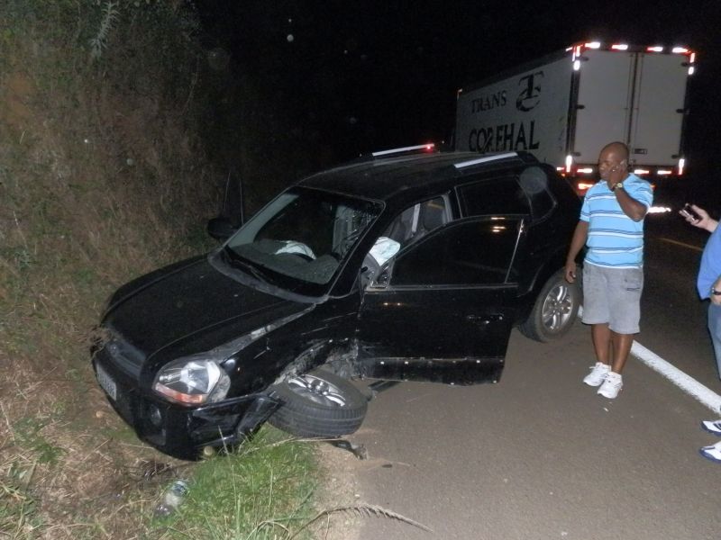 11/05/2012 Dois veículos se chocaram no início da noite desta quinta-feira (10) em Joaçaba. O acidente aconteceu por volta das 18h30 no km 398 da BR-282, distante aproximadamente cinco quilômetros do acesso ao Distrito Industrial. A colisão envolveu o Nissan March placas MJW-4012 de Concórdia, conduzido por Vânia Comandulli, de 56 anos, e a camionete Hyunday Tucson placas MJB-1979 de Blumenau, conduzida por Cláudio Bambineti, de 38 anos.
