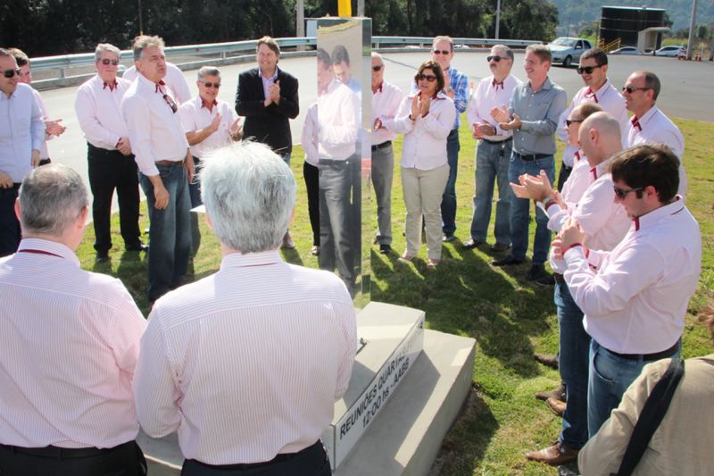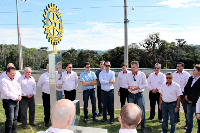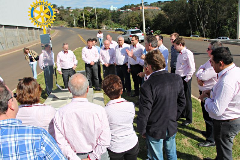 10/06/2015 A quarta-feira, 10 de junho, foi especial para o movimento rotariano de Joaçaba. A diretoria atual, que encerra a gestão no final deste mês de junho, promoveu um pequeno ato para marcar a inauguração do Marco Rotário. A “Roda Dentada”, símbolo do Rotary Club, acompanhada por um “J”, a primeira letra de Joaçaba, foi implantada na rótula em frente a empresa Pegoraro no acesso Adolfo Ziguéli. As duas peças foram colocadas em cima de uma base de concreto, servindo como marca para divulgação do clube de serviço.