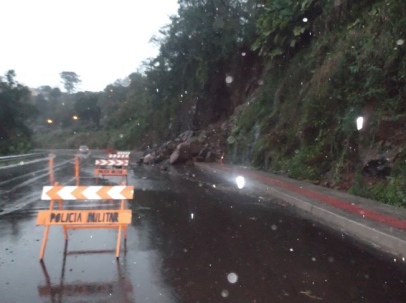 Já na cidade de Joaçaba o problema foi registrado no Acesso Adolfo Ziguelli onde o trânsito também ficou em meia pista, devido ao deslizamento de pedras para o asfalto.
