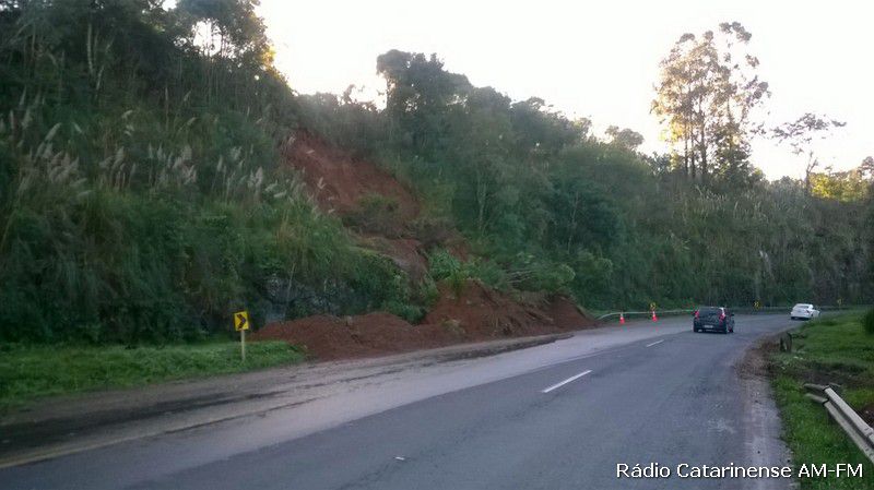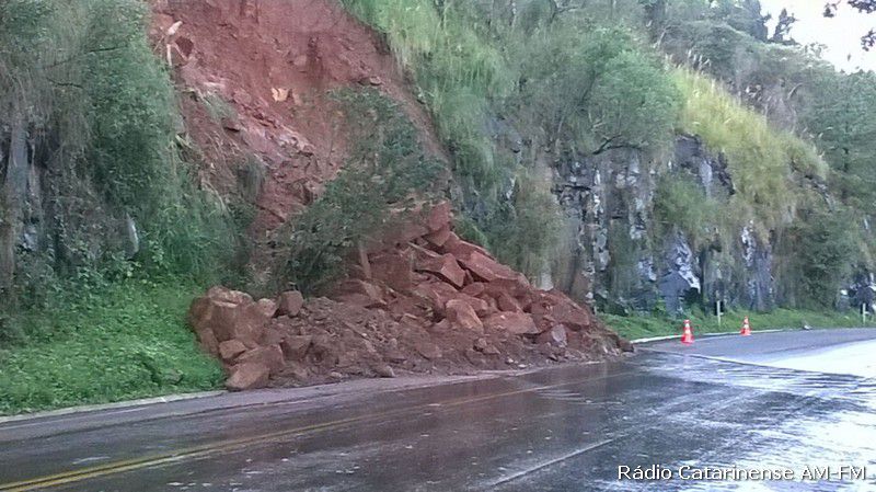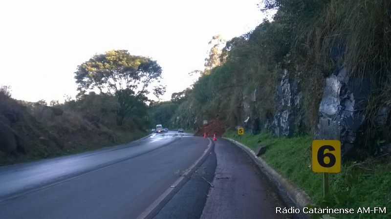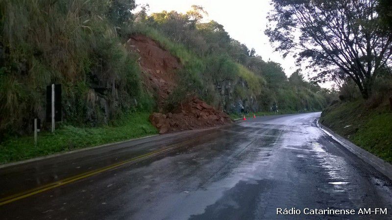 15/06/2015 Depois de ter sido interditada neste final de semana devido a queda de uma barreira, a Curva do Passat na BR-282 já está totalmente liberada. A interdição por parte da Polícia Rodoviária Federal (PRF), aconteceu por causa das fortes chuvas deste domingo (14) que fizeram com que pedras, lama e árvores fossem levadas para a pista. A limpeza no trecho do Km 374 foi realizada por máquinas e funcionários do Dnit. Nesta segunda-feira (15) o trânsito no local estava fluindo normalmente.