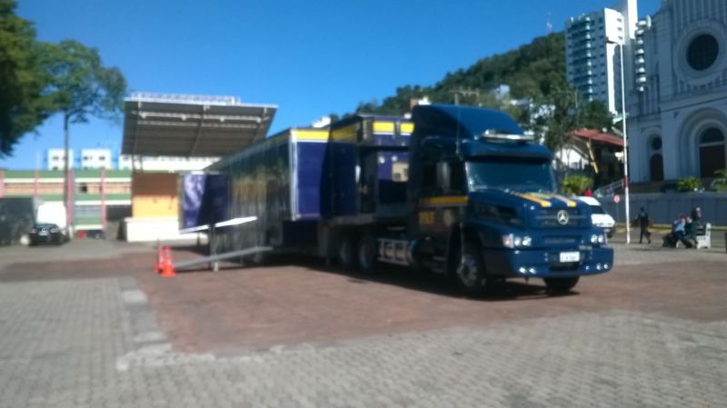 15/06/2015 A Polícia Rodoviária Federal transformou uma carreta em sala de cinema para o trabalho de conscientização de segurança no trânsito a toda população, especialmente a estudantes de escolas municipais. Inaugurado em 2014 com 92 lugares, teleprojeção e ar condicionado, já percorreu os 25 postos da PRF em Santa Catarina.
