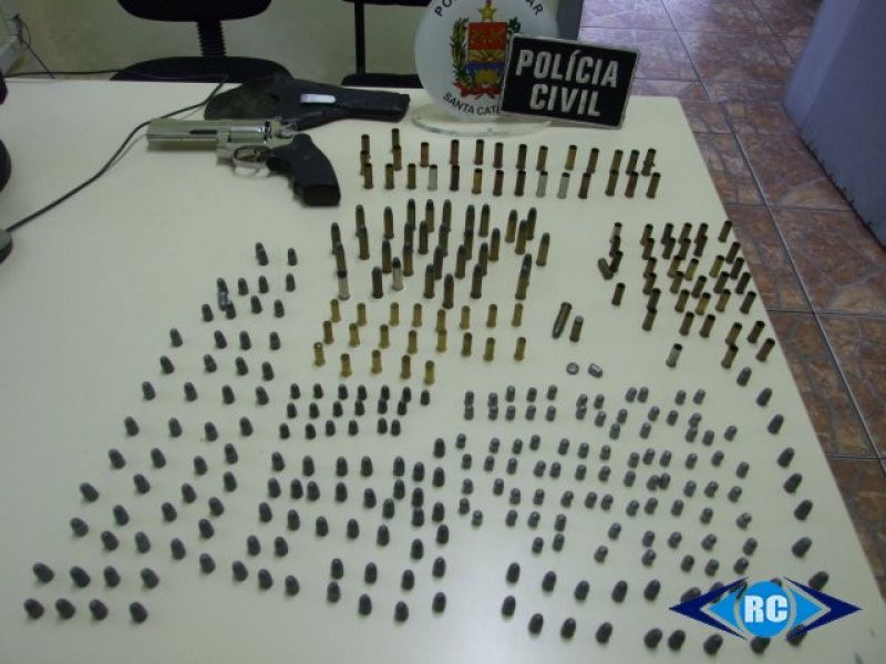 A operação ocorreu às 13h, na rua Sady Domingos Brancher, Loteamento Arco Íris, em Capinzal. Na residência de C.L., de 25 anos, os policiais apreenderam um revólver calibre 38, seminovo, com 8 centímetros de cano e uma quantidade considerável de munição: 33 munições calibre 38 de recarga, 60 estojos vazios calibre 32, 29 estojos vazios calibre 38 e 220 pontas de calibres 32 e 38. Os policiais acreditam que o suspeito preso possua um equipamento para recarga.