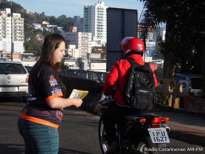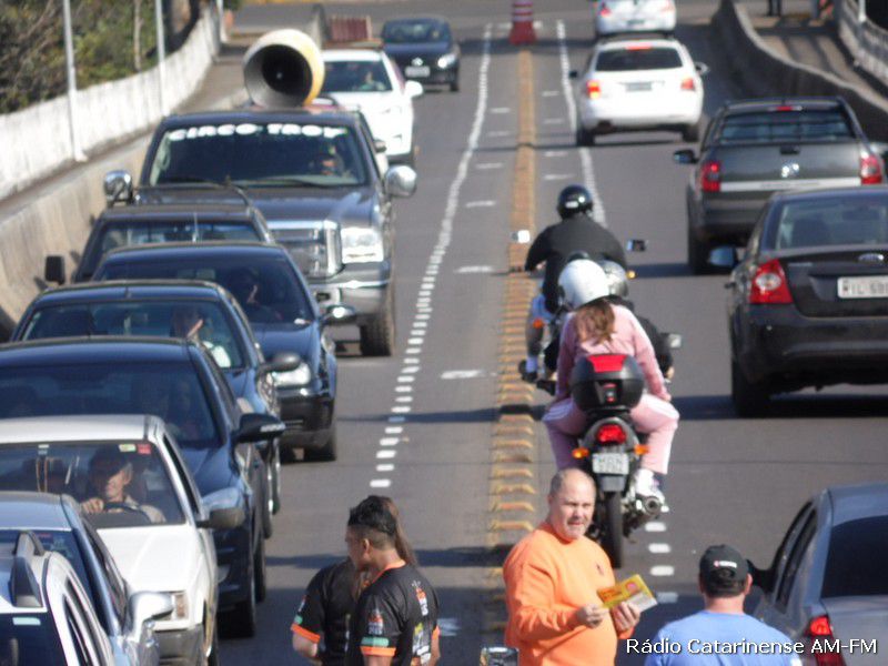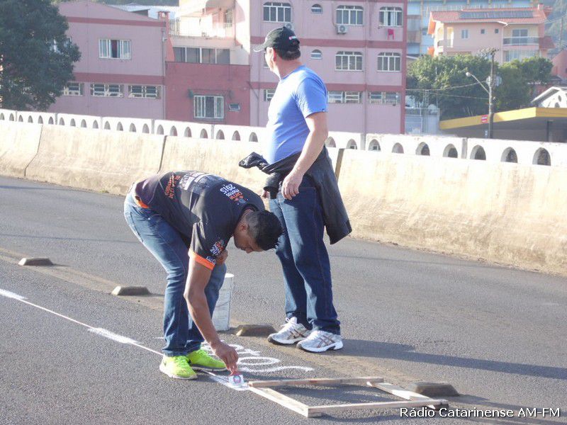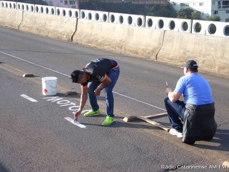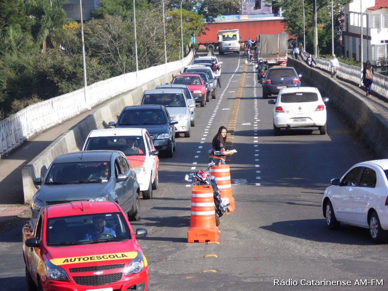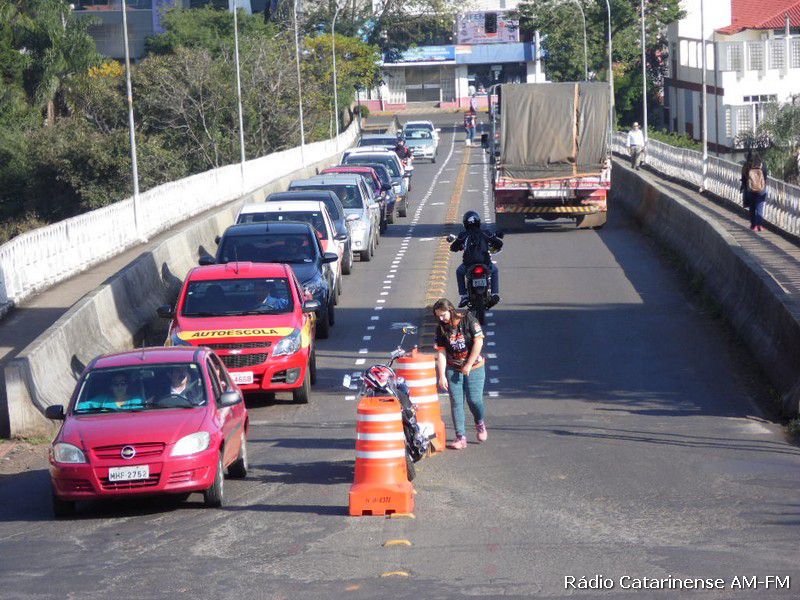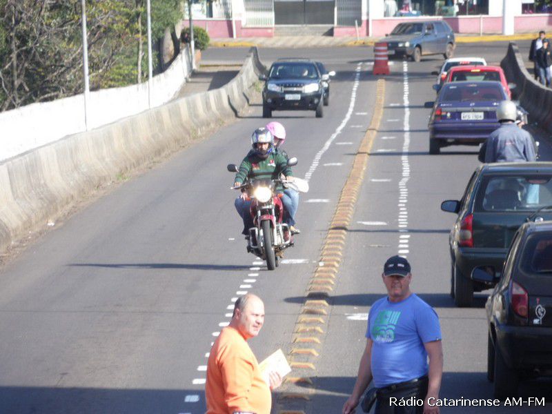 27/06/2015 Começou a funcionar no final da manhã deste sábado (27), o corredor para motocicletas na ponte Emilio Baumgart que liga Joaçaba a Herval d´Oeste, nas proximidades do Hospital São Miguel. Por volta das 8h a parte central da pista foi pintada e automaticamente um panfleto explicando a alteração no trânsito foi entregue aos motoristas e motociclistas que passavam pelo local.