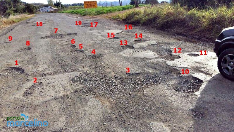 A equipe de reportagem da Rádio Catarinense, com uso de uma régua escolar, mediu o tamanho do descaso do Governo do Estado para com os usuários da rodovia. Muitos buracos, principalmente entre o trevo de Piratuba e a Usina de Machadinho, atingem o recorde de quase 30 centímetros de profundidade. São verdadeiras armadilhas ao ar livre e que ficam mascaradas em dias de chuva, tornando o trecho ainda mais perigoso. “Não dá pra acreditar que nossas autoridades deixaram a rodovia chegar neste ponto lamentável e que não fazem nada com urgência, é muito triste isso” comentou Rodrigo de Lima, motorista de uma empresa que passa três vezes por semana pela SC. Mesmo os motoristas mais experientes, que passam com frequência pelo trecho, são surpreendidos a cada dia com novos buracos. “Não tem como desviar, você tem que escolher em qual buraco quer cair” observou o jornalista Marcelo Santos que utilizada a rodovia semanalmente e que somente este ano teve duas rodas amassadas e um pneu rasgado. “Tem buraco na fila esperando pra entrar” grita um morador ao perceber que a rodovia estava sendo fotografada.
