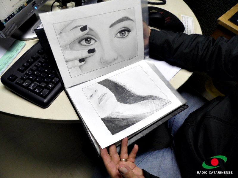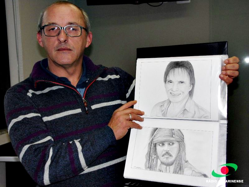 08/07/2015 Desenhos que podem ser confundidos com fotografias são a especialidade de um morador de Catanduvas que reside no bairro Regina. Com apenas lápis e papel canson, o vigilante Edson Menegasso faz desenhos ricos em detalhes e expressões. Vigilante aos detalhes, nada passa desapercebido aos olhos do catanduvense de 51 anos que aprendeu a técnica em vídeos no youtube. Nesta quarta-feira (08) ele esteve na Rádio Catarinense participando do programa da Alegria e surpreendeu o comunicador Amarildo Monteiro. “Nossa quando eu vi, pensei de onde ele tirou minha foto” comentou Monteiro, que recebeu uma imagem de presente.