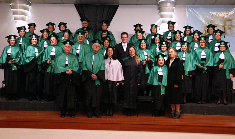 10/07/2015 Os alunos da Universidade da Terceira Idade (Uniti) mostraram mais uma vez que a idade não é um obstáculo para aprender coisas novas. No último sábado (4) ocorreu a formatura de 41 alunos, que concluíram o curso de quase dois anos realizado na Unoesc. Na cerimônia estiveram presentes a diretora de Pesquisa, Pós-graduação e Extensão, Jessica Romeiro Mota, a coordenadora da Uniti e do curso de Enfermagem, Fabiana Meneghetti Dallacosta e os professores Celio Alves de Oliveira e Marly Baretta.