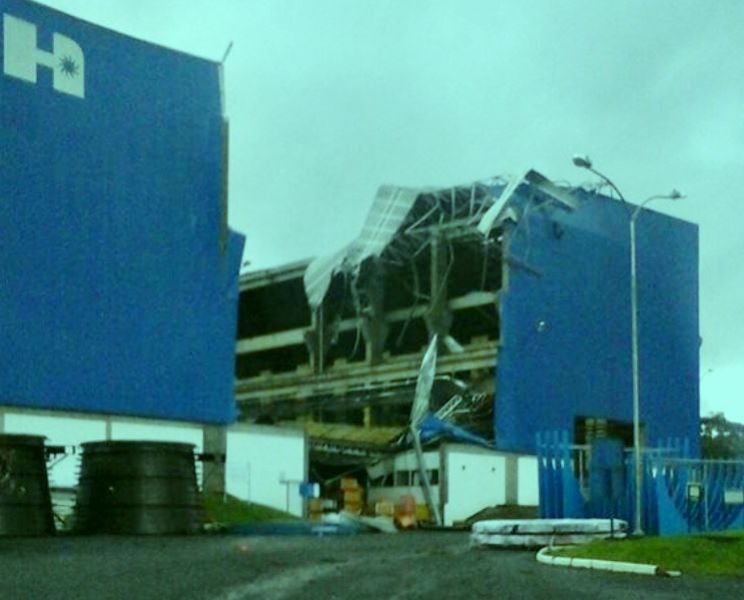 14/07/2015 A empresa HISA WEG, localizada no bairro São Brás em Joaçaba, às margens da BR-282, registrou prejuízos de grande monta com o vendaval da noite desta segunda-feira. O vento atingiu em cheio os pavilhões, arrancando telhados e atingindo inclusive a estrutura. A empresa não permitiu imagens no local. O comandante dos Bombeiros, capitão Sommer, durante entrevista a Rádio Catarinense, estimou os prejuízos em mais de R$ 10 milhões. Na avaliação preliminar o barracão mais atingido terá que ser reconstruído.