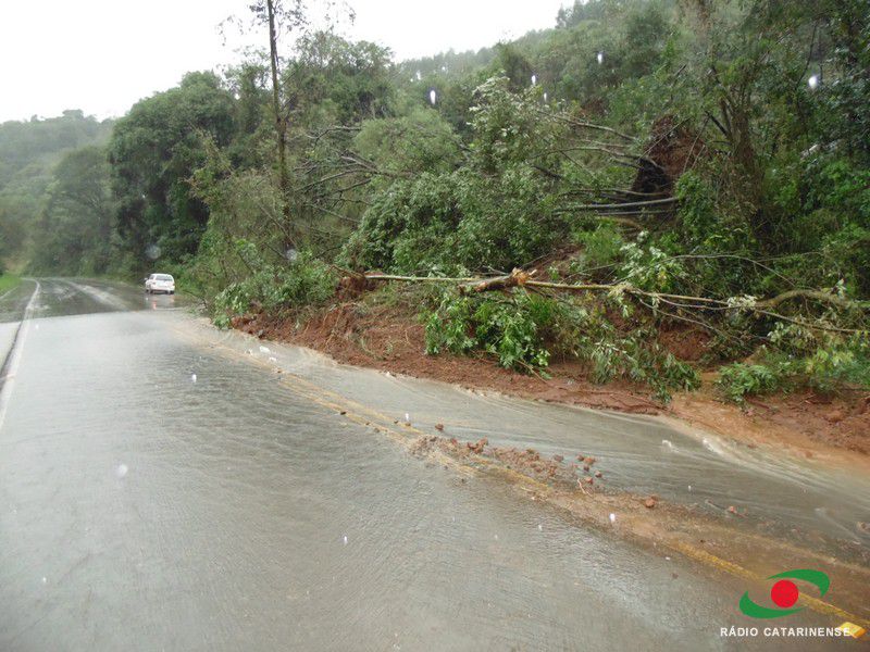 14/07/2015 As chuvas provocaram novamente quedas de barreiras na rodovia entre Joaçaba e Ouro na madrugada e manhã desta terça-feira (14). Os problemas foram registrados em pelo menos 11 pontos, sendo quatro deles os mais críticos em razão do volume de terra e entulhos. A rodovia chegou ficar interditada em alguns trechos. Máquinas das prefeituras e do DEINFRA trabalharam pesado para remover as barreiras e liberar o trânsito. Na pista existe ainda muito entulho, água e terra, por isso a Polícia Rodoviária Estadual (PRE) pede muita cautela para os usuários. Na tarde de hoje máquinas do DEINFRA vão intensificar os trabalhos em todo trecho. O trânsito está liberado, em alguns pontos em meia pista.
