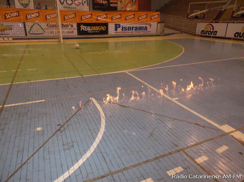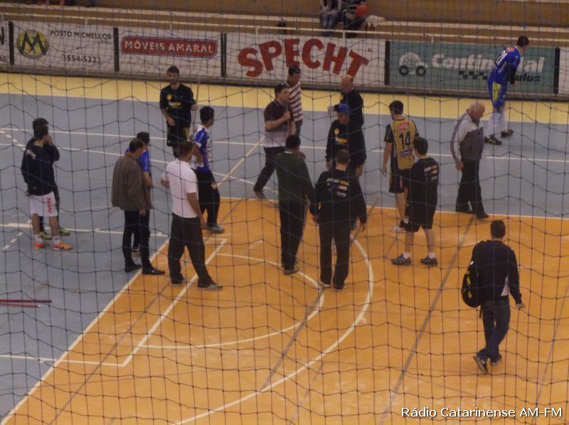 Posteriormente os árbitros da partida, Enemir Corozzola e Vinicius Eduardo Andrade resolveram tentar dar início para o jogo, sendo que em menos de cinco minutos, devido as quedas que estavam acontecendo, houve-se por bem, cancelar a partida e deixar que a Federação Catarinense de Futsal marque uma nova data.