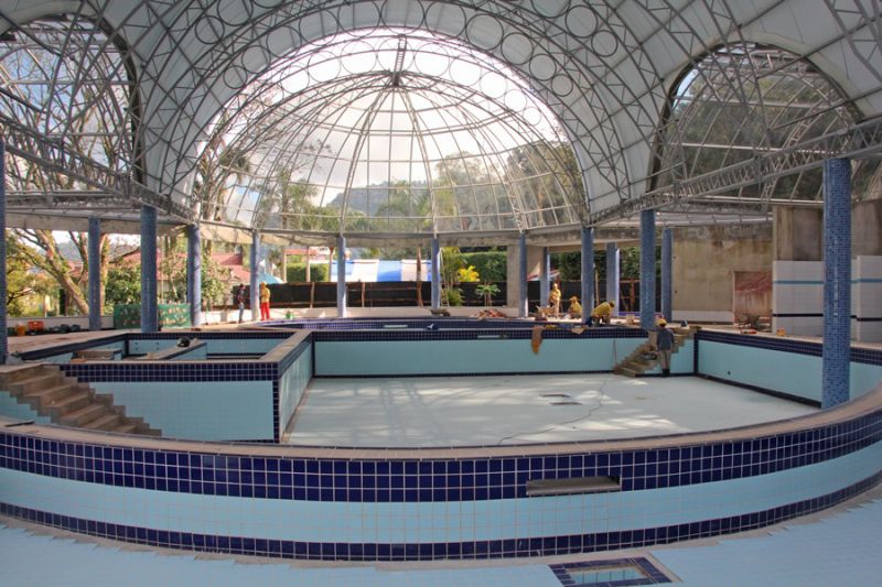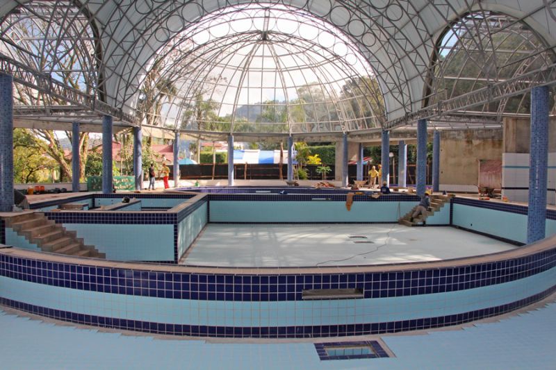 A construção está na última fase. As obras estão sendo finalizadas nas piscinas e a parte de cobertura também já está praticamente pronta. “Nossa previsão era de que em julho teríamos tudo concluído, porém em função de alguns imprevistos e das chuvas, a empresa solicitou uma prorrogação de prazo. Mas acredito que em torno de 40 dias as obras estejam prontas”, ressalta Marise.