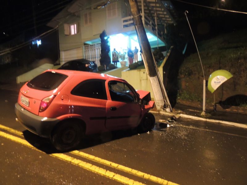 24/07/2015 Moradores da rua Getúlio Vargas, que residem nas proximidades da segunda lombada eletrônica, foram acordados na madrugada desta sexta-feira (24) com um forte estrondo. Por volta das 04h um GM/Celta, com placas de Celso Ramos, colidiu de forma violenta contra um poste, próximo da via que dá acesso a rua Sete de Setembro. O veículo estava sendo conduzido por uma jovem de 20 anos. A condutora saiu da pista e parou depois de bater no poste de energia da CELESC. Ela foi socorrida pelas equipes de emergência do Corpo de Bombeiros e do SAMU e foi levada para o Hospital Santa Teresinha com fratura na clavícula e outras lesões pelo corpo.