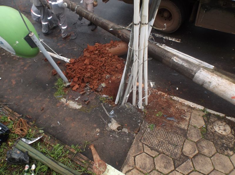 De acordo com moradores das imediações, o poste, é alvo de motoristas com frequência.