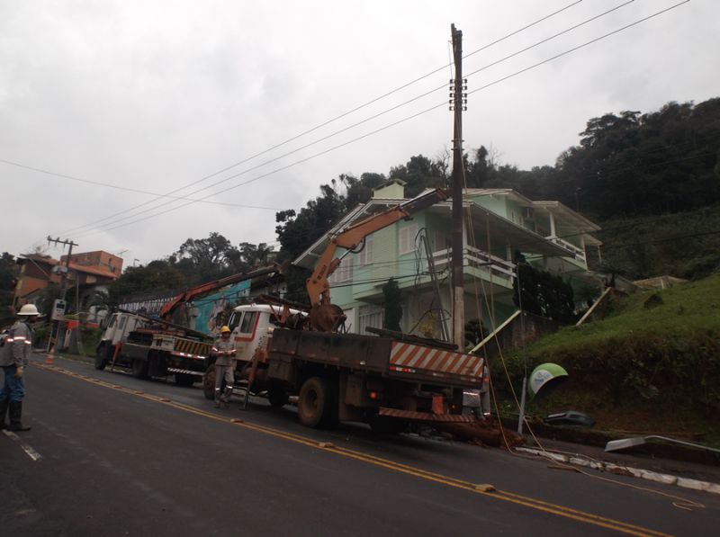 Por volta das 09h30 a CELESC iniciou os trabalhos que deverão se estender até o meio dia. A orientação é para que os motoristas não utilizem a Getúlio. A rede de abastecimento foi desligada da empresa Intervinhos até nas proximidades da Clinica Castelo.