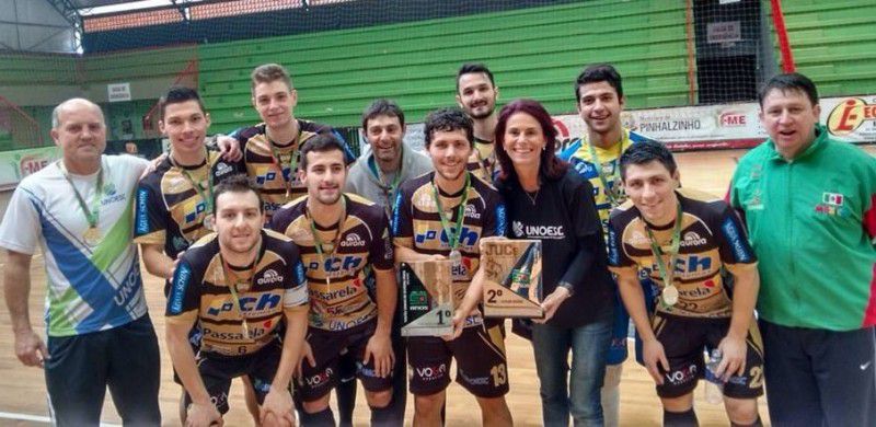 27/07/2015 O CH Sistemas/Dom Fiorelo/Unoesc Joaçaba Futsal conquistou um importante título neste domingo (26), em Pinhalzinho. Pelo quarto ano consecutivo a equipe é campeã dos Jogos Universitários Catarinenses (JUCs), promovidos pela Federação Catarinense do Desporto Universitário (FCDU), com o apoio do Governo do Estado, por meio da Fundação Catarinense de Esporte (Fesporte).