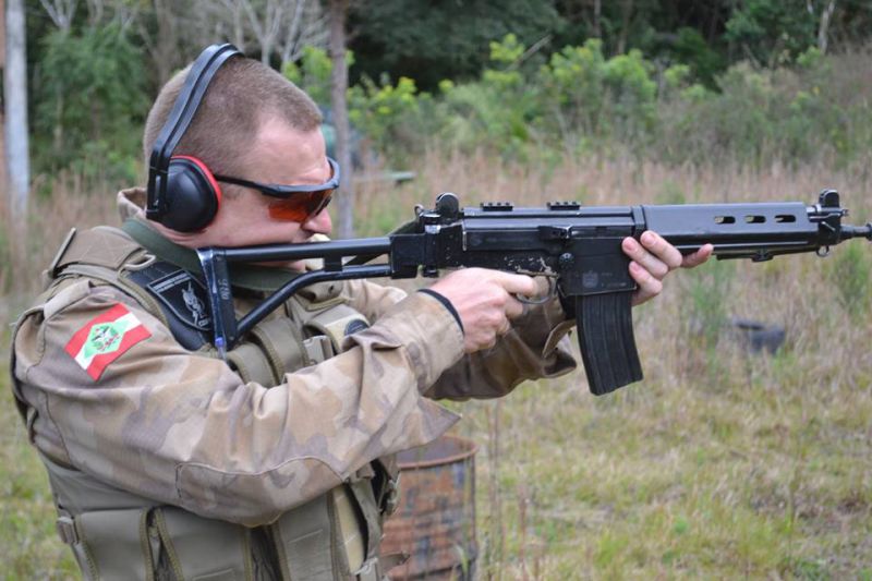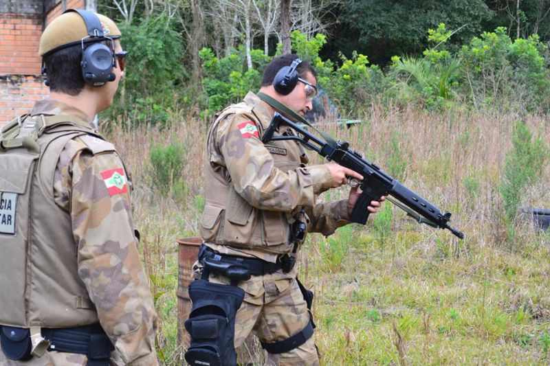 28/07/2015 Os policiais que fazem parte do Pelotão de Patrulhamento Tático (PPT) do 26º Batalhão da Polícia Militar com sede em Herval d’Oeste participaram neste mês de julho de uma instrução com o Fuzil calibre 556mm. O fuzil, que vai ampliar o poder de fogo contra a criminalidade, pesa cerca de 3 quilos e é capaz de atingir um alvo a 600 metros de distância. Ele dispara até 600 tiros por minuto. A instrução foi ministrada pelo Tenente Lopes.