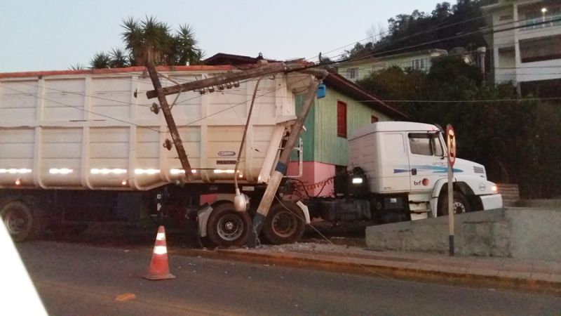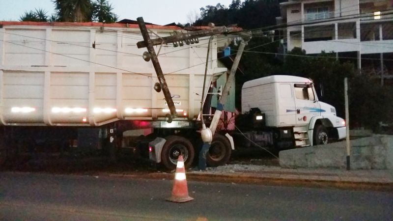 03/08/2015 Uma carreta quebrou um poste no início da manhã desta segunda-feira (03) no município de Lacerdópolis. O acidente aconteceu por volta das 06h30 quase em frente ao terminal rodoviário. O motorista estava manobrando para sair da garagem quando atingiu o poste da CELESC. Cabos de energia ficaram pendurados e a Polícia Militar (PM) isolou a área até a chegada dos técnicos da CELESC. Ninguém ficou ferido, apenas danos materiais foram registrados.