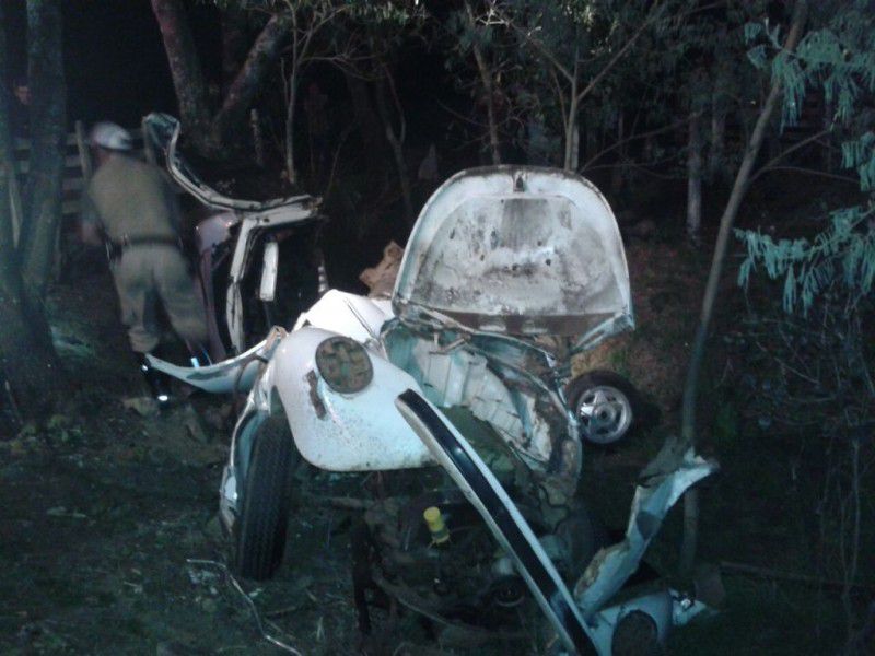 08/08/2015 Um grave acidente automobilístico mobilizou a guarnição do Corpo de Bombeiros Militar de Água Doce nesta sexta-feira (7), quando um automóvel Fusca colidiu violentamente contra uma árvore por volta das 18h25 no Km 19 da SC-150, na localidade de Herciliópolis.