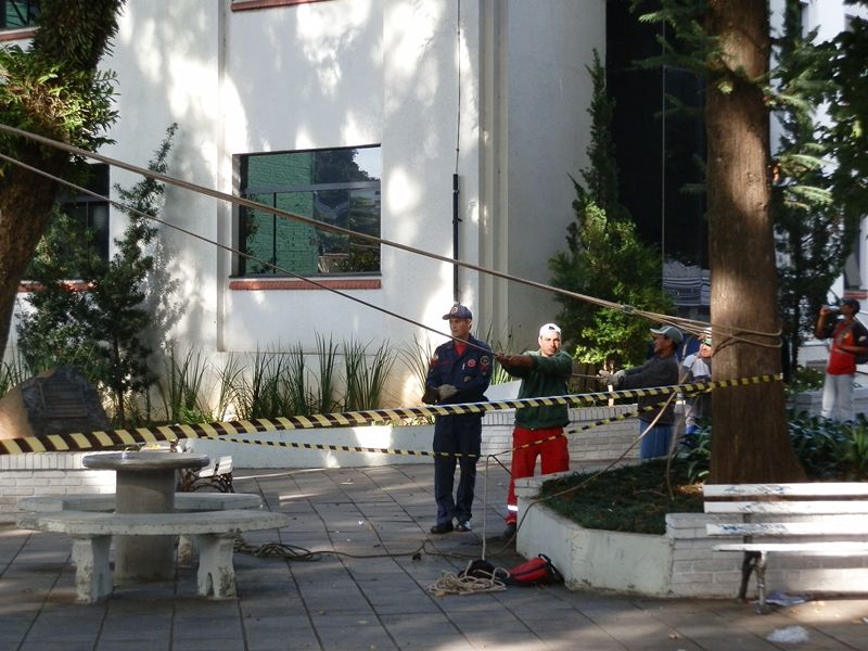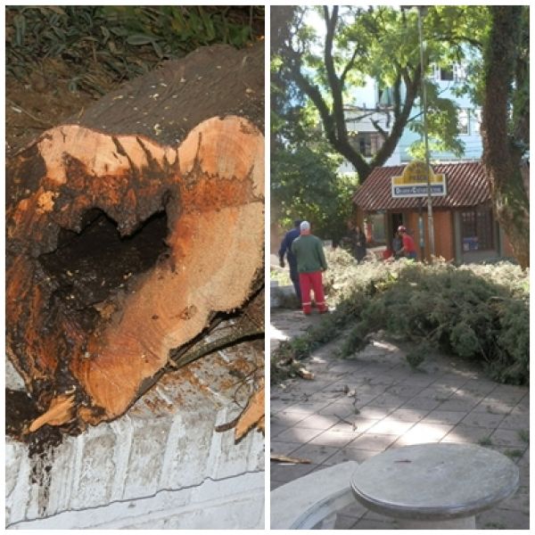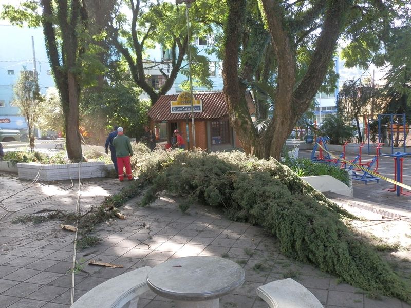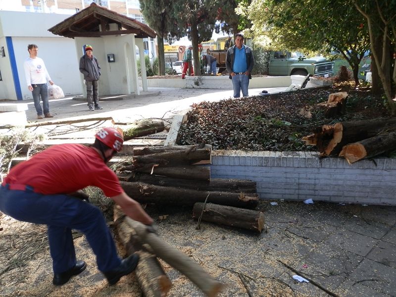 15/05/2012 Uma operação do Corpo de Bombeiros para o corte de uma árvore na praça Adolfo Konder em Joaçaba (praça da prefeitura) chamou a atenção na manhã desta terça-feira (15) de pessoas que passavam pelo local. A árvore, um cipreste, oferecia riscos para os frequentadores da praça, pois o tronco estava comprometido (fotos). Engenheiros da prefeitura realizaram uma vistoria e constataram através de laudo que a mesma deveria ser removida por medida preventiva. O Corpo de Bombeiros mobilizou a praça e cortou a árvore por volta das 10hs. As fotos mostram que o tronco já estava oco. O cipreste é muito utilizado como árvore ornamental e na produção de madeira.
