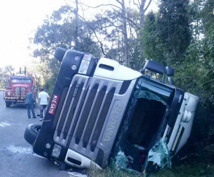 12/08/2015 Por volta das 15h desta quarta-feira (12) um acidente envolvendo uma carreta com placas MIE-5470 de Joaçaba conduzida por G.T.R. de 33 anos e que tinha na carona a mulher de iniciais J.D. de 35 anos, foi registrado no KM-422 da BR-282 na cidade de Vargem Bonita. O veículo que estava carregado com frangos congelados e que transitava no sentido Catanduvas tombou na pista, causando ferimentos leves no motorista, enquanto que a caroneira teve que ser transferida para o Hospital Universitário Santa Terezinha (HUST) em Joaçaba com suspeita de fraturas nas pernas.