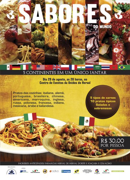 28/08/2015 Acontece nesse sábado, dia 29, no Centro de Eventos da Unidos do Herval o jantar gastronômico “Sabores do Mundo. 5 continentes em único jantar” – promovido pela Associação Comercial e Industrial de Herval d´Oeste (ACIHO). Segundo o presidente Sérgio de Giacometti, o projeto tem como objetivo se tornar uma tradição e substituir a antiga festa do porco ao prato realizada pela entidade por diversos anos.
