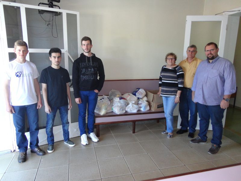 31/08/2015 O Instituto Federal Catarinense (IFC) Campus Luzerna entregou ao Hospital São Roque, na manhã desta segunda-feira (31), cerca de 125 quilos de alimentos. A doação é o resultado de duas ações promovidas pelo instituto. A primeira é referente ao trote solidário feito por alunos do curso de Engenharia Mecânica. Já o outro montante foi arrecadado na exibição do documentário “Terra Cabocla”, atividade do Projeto Cinestória que aconteceu no dia 14. De acordo com o aluno Gabriel Moresco, o trote solidário foi organizado pelos acadêmicos da 3ª fase em conjunto com os calouros do curso, que ingressaram no IFC neste mês. A presidente do hospital, Irene Dalla Lana, comemorou as doações. “Recebemos tudo de braços abertos. Todos sabem que a situação dos hospitais, hoje, é bastante precária”, comenta.