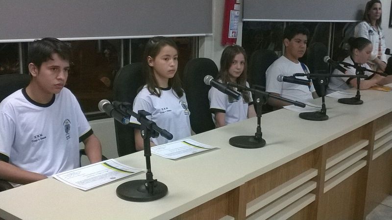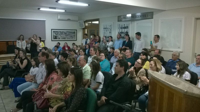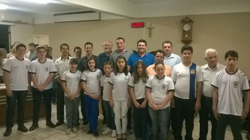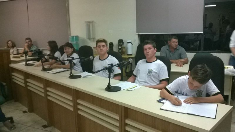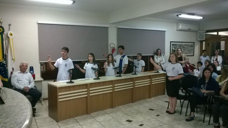 01/09/2015 Os integrantes da Câmara Mirim do município de Herval d’Oeste tomaram posse durante solenidade realizada na noite desta segunda-feira (31). São 10 vereadores mirins com idade média de 13 anos que foram eleitos nas escolas e que agora terão a missão de defender alguns projetos e sugestões. O presidente da Câmara, Leonardo Mascarelo, destacou como fator positivo a grande mobilização dos professores, diretores de escolas e alunos em torno do projeto. Segundo ele o projeto tem uma duração de seis meses, mas deverá ser mantido com intenção de inserir os jovens na política. Outro objetivo é saber o que pensam os adolescentes e quais os anseios da comunidade escolar. O próximo passo será uma visita ao poder executivo onde eles terão a oportunidade de conhecer o funcionamento da prefeitura.