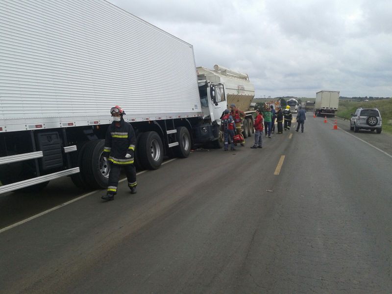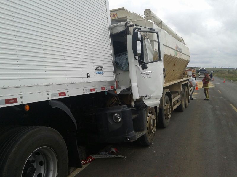 A informação é de que um caminhão graneleiro, com placas de São João/PR, teria colidido na traseira de uma carreta baú. O condutor do graneleiro morreu prensado nas ferragens. Corpo de Bombeiros tiveram muita dificuldade para fazer o resgate da vítima que teve morte instantânea. Os policiais estão apurando as causas do acidente que deixou a BR-153 parcialmente interditada.