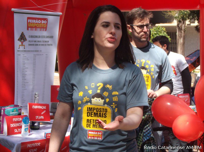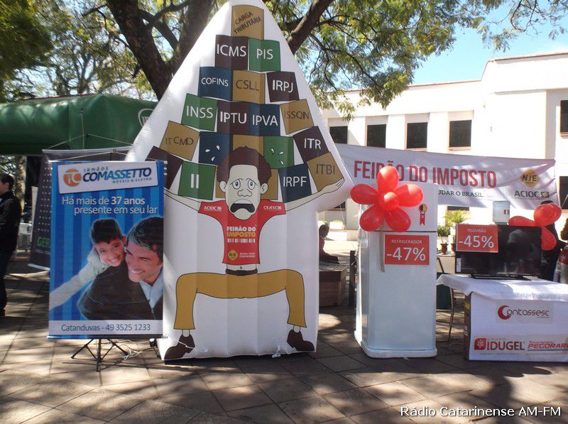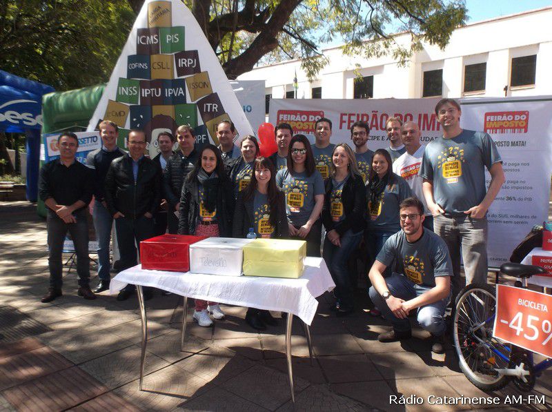 12/09/2015 Durante toda a manhã deste sábado (12), foi realizado na praça Adolfo Konder, defronte a prefeitura de Joaçaba, mais uma edição do Feirão do Imposto que tem por objetivo, conscientizar os consumidores sobre a quantia de impostos que são pagos em cada produto.