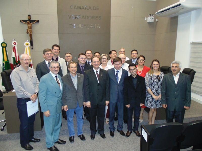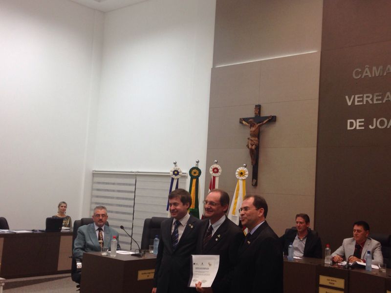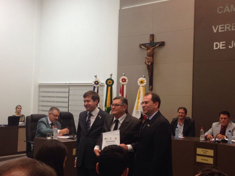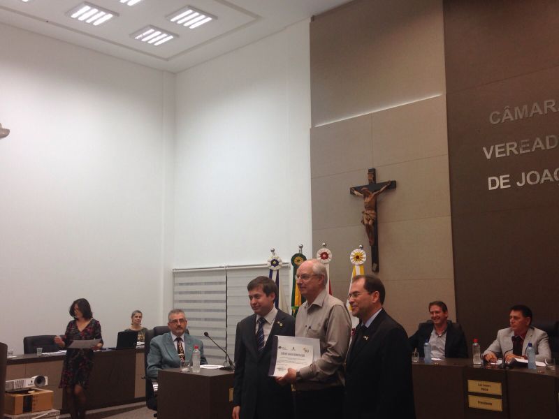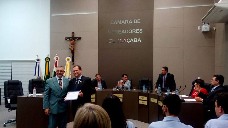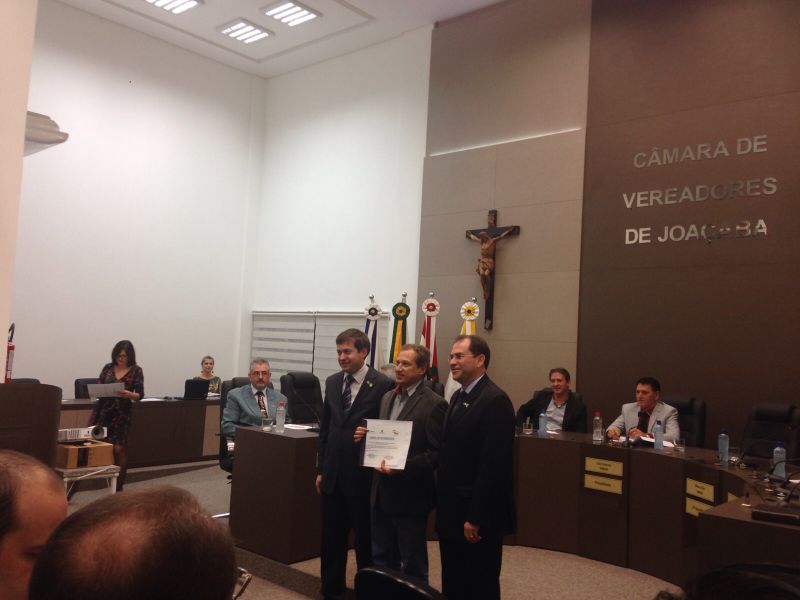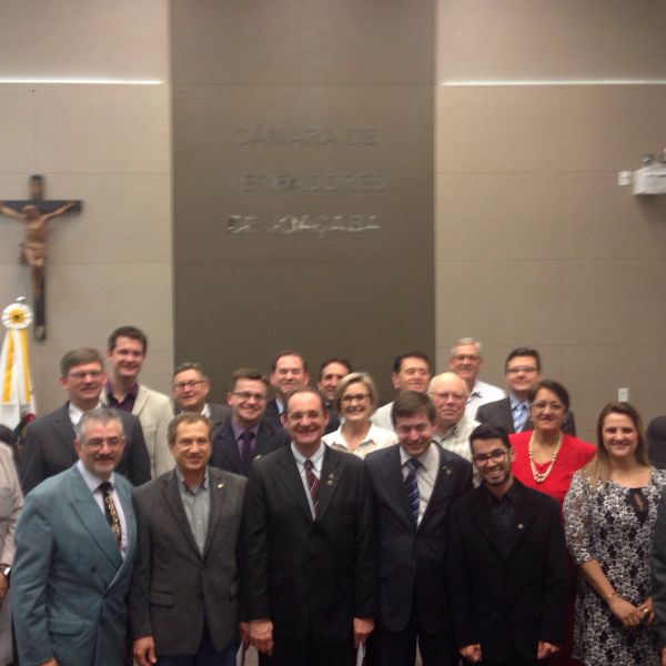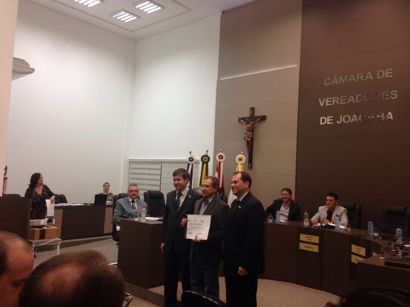 16/09/2015 A Câmara de Vereadores de Joaçaba realizou na noite desta quarta-feira (16) sessão solene em homenagem aos 50 anos da regulamentação da profissão de administrador. A sessão solene foi proposta pelo vereador Juscelino Ferraz. A diretoria do Conselho Regional de Administração (CRA) participou da reunião. O Jubileu de Ouro está sendo comemorado neste mês de setembro. São 50 anos de regulamentação da profissão, uma profissão jovem e essencial para o bom andamento das empresas seja ela pública ou privada. O fortalecimento da profissão se dá pelo trabalho desenvolvido pelos Conselhos em todo o país. Os Conselhos Regionais tem como missão Promover a Ciência da Administração valorizando as competências profissionais, a sustentabilidade das organizações e o desenvolvimento do país. O presidente do CRA em Joaçaba é o empresário Djalma Hack.