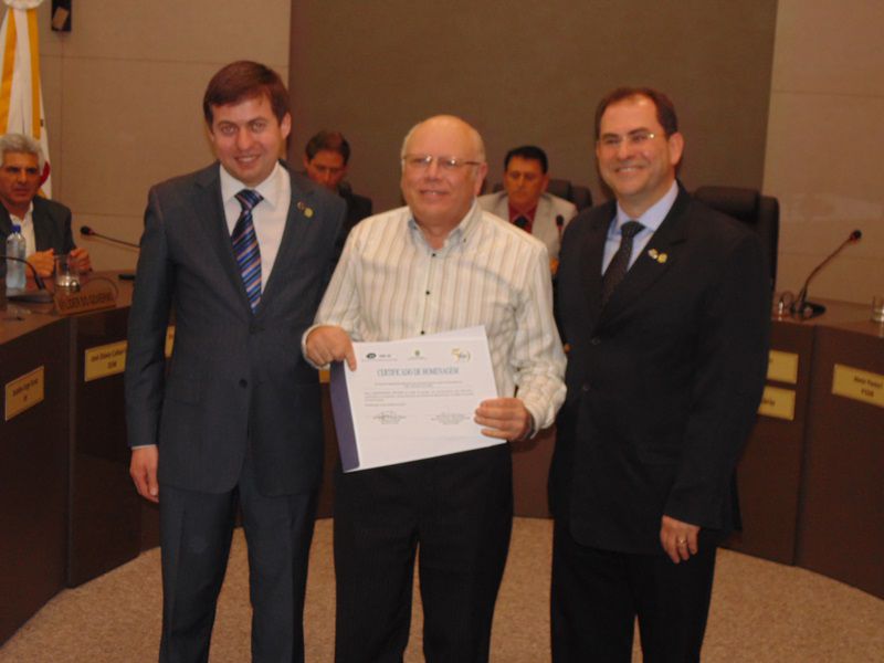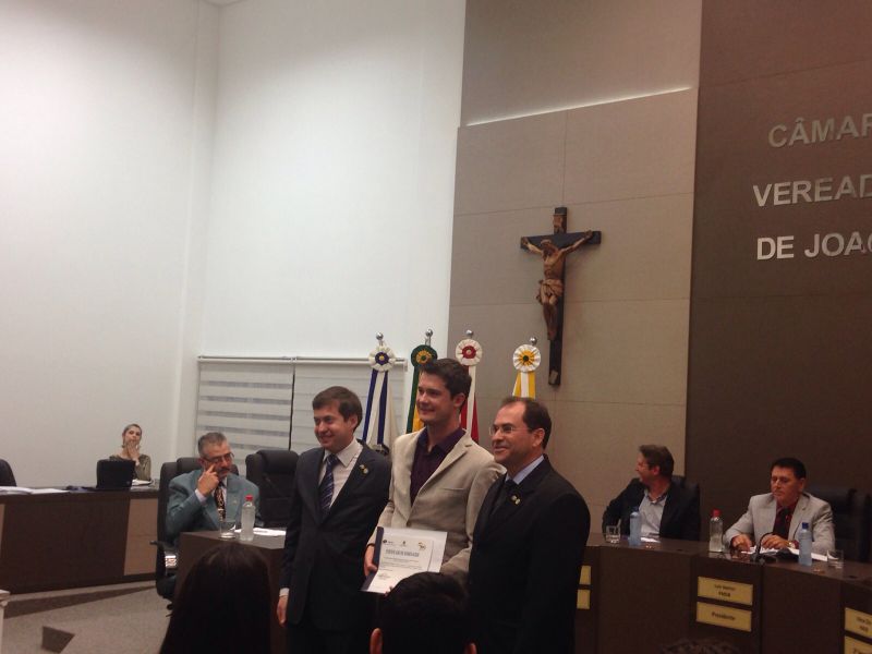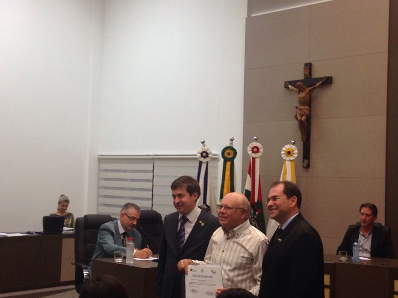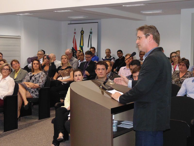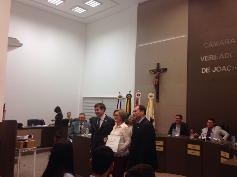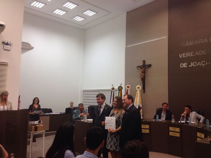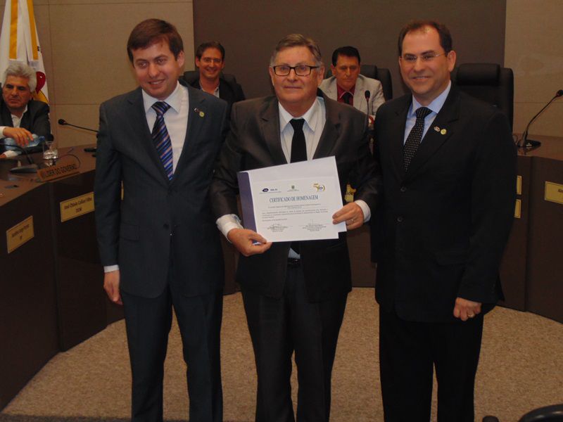 16/09/2015 A Câmara de Vereadores de Joaçaba realizou na noite desta quarta-feira (16) sessão solene em homenagem aos 50 anos da regulamentação da profissão de administrador. A sessão solene foi proposta pelo vereador Juscelino Ferraz. A diretoria do Conselho Regional de Administração (CRA) participou da reunião. O Jubileu de Ouro está sendo comemorado neste mês de setembro. São 50 anos de regulamentação da profissão, uma profissão jovem e essencial para o bom andamento das empresas seja ela pública ou privada. O fortalecimento da profissão se dá pelo trabalho desenvolvido pelos Conselhos em todo o país. Os Conselhos Regionais tem como missão Promover a Ciência da Administração valorizando as competências profissionais, a sustentabilidade das organizações e o desenvolvimento do país. O presidente do CRA em Joaçaba é o empresário Djalma Hack.