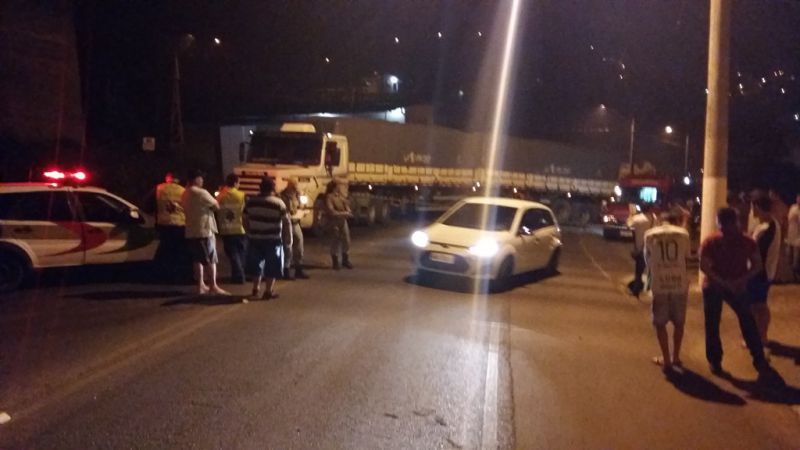 A carreta tomou conta da pista e o trânsito da avenida Santa Teresinha teve que ser desviado pelo estacionamento da empresa ADM. Pedro Mascarelo, 52 anos, era morador da rua Domingos Nereu Parise, barro São Vicente, Herval d’Oeste. O acidente aconteceu por volta das 21h.
