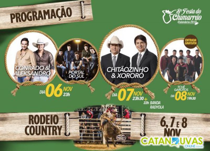 19/09/2015 Os organizadores da Festa do Chimarrão que acontecerá na cidade de Catanduvas de 6 a 8 de novembro, liberaram neste sábado (19), o primeiro lote de ingressos cujos valores são populares e encontram-se à venda nos seguintes locais: JR Imóveis e Loja Irmãos Comasseto.