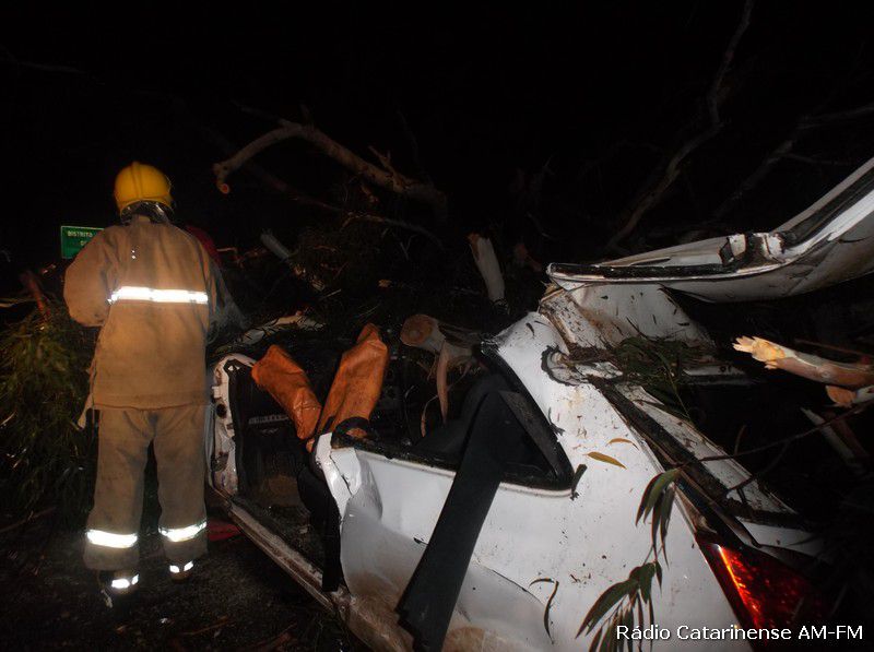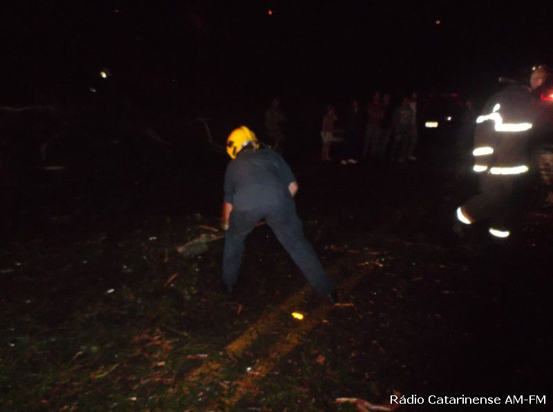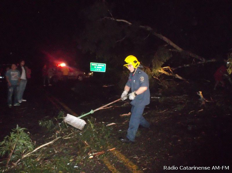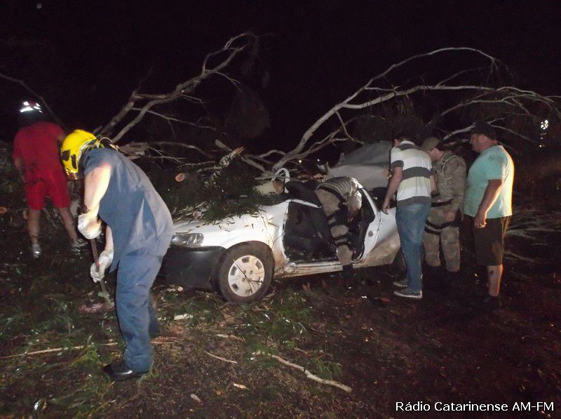 A ocorrência de maior destaque foi registrada na BR-282, proximidades da rodoviária municipal, na Cidade Alta, onde um automóvel GM Celta de cor branca e com placas MBS-0355 de Joaçaba, foi atingido por uma árvore (eucalipto). No veículo além do motorista tinham mais duas caroneiras, suas filhas que nada sofreram.