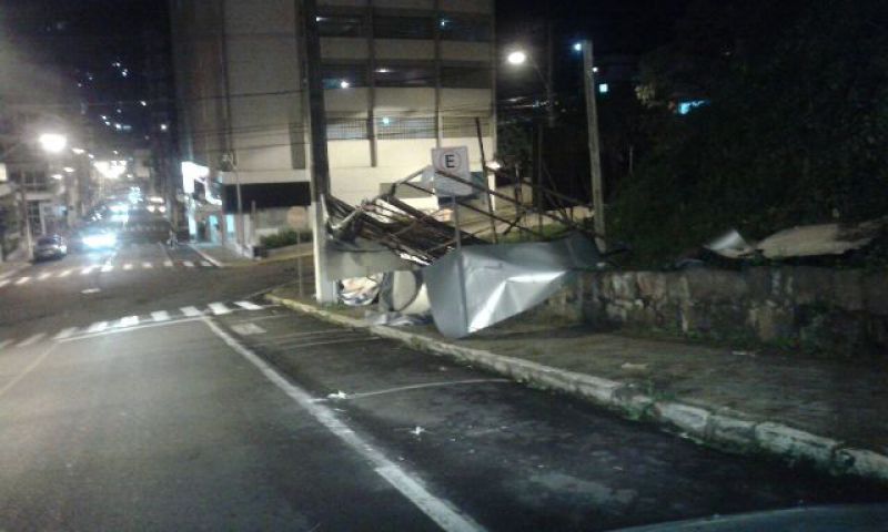 Transeuntes e motoristas que estavam na área central ficaram bastante assustados, porque algumas placas de publicidade foram arrancadas com a força do vento.