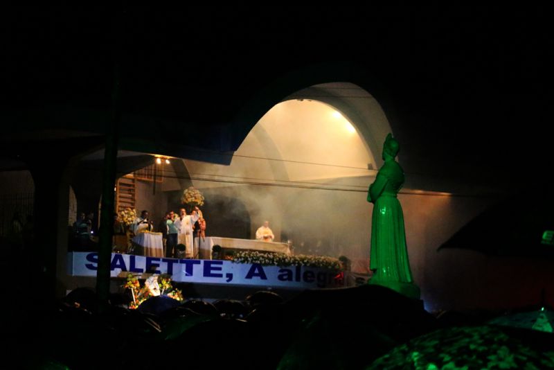 A imagem de Nossa Senhora foi carregada por voluntários que se revezaram no caminho. Eram 21h quando os sinos tocaram e os fogos iluminaram os céus anunciando a chegada de Salette ao Santuário. Mesmo com a forte chuva os devotos tomaram conta dos jardins do santuário, e principalmente do hall de entrada da Igreja para acompanhar a celebração. O número de romeiros na noite deste sábado em Marcelino Ramos foi menor do que o público registrado em 2014. “Este ano veio mesmo quem tem Fé em Salette, porque sair numa tempestade desta, não é fácil” comentou uma comerciante de Chapecó, que vem a Marcelino pelo 9º ano consecutivo. A Romaria prosseguirá neste domingo.