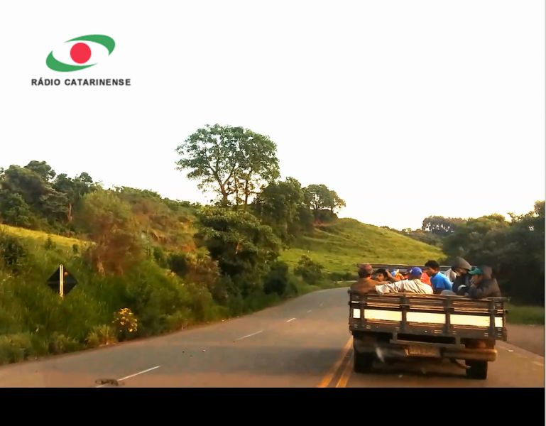20/10/2015 A Central de Jornalismo da Rádio Catarinense recebeu um vídeo que mostra irregularidade no transporte de pessoas na SC-150 entre os municípios de Lacerdópolis e Ouro. O vídeo foi gravado por volta das 07h da manhã desta terça-feira (20). Ele mostra pelo menos 7 pessoas na carroceria de uma camionete com placas de Ouro. As pessoas estavam sentadas e deitadas sem qualquer tipo de proteção ou adaptação. A cena configura uma irregularidade e mostra o risco de morte que estes passageiros foram submetidos. O flagrante aconteceu no município de Lacerdópolis. Veja o vídeo: