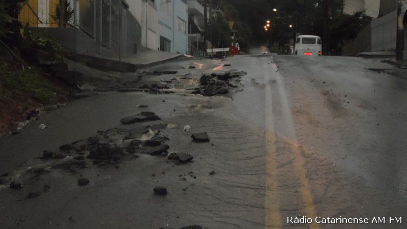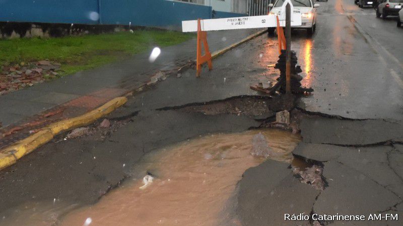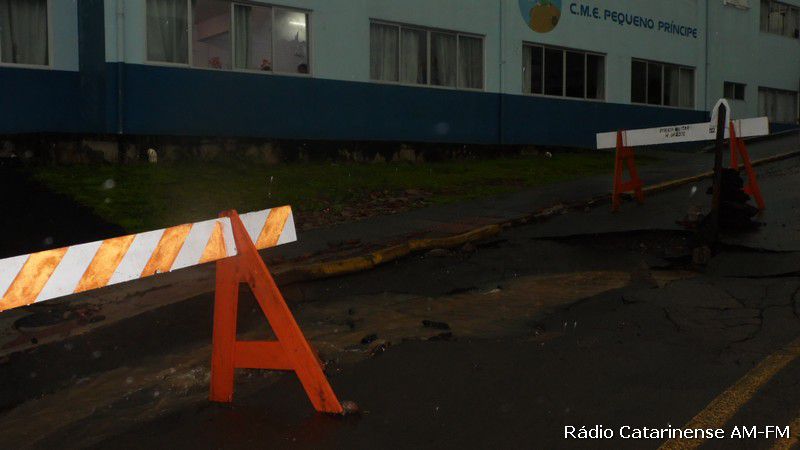22/10/2015 As fortes chuvas durante a madrugada e manhã desta quinta-feira (22) trouxe problemas aos moradores da rua Senador Euzébio na área central de Herval d´Oeste. Quem saiu para trabalhar foi pego de surpresa com o rompimento da tubulação que passa pelo local. O problema foi constatado defronte a Escola Básica Municipal Pequeno Príncipe.