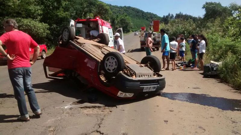 28/10/2015 Um automóvel capotou na manhã desta quarta-feira (28) na SC-355 em Jaborá. O acidente ocorreu por volta das 11h na localidade de Jaborazinho, na saída para Catanduvas. Segundo informações, um Fiat Uno com placas de Jaborá com cinco ocupantes fazia o sentido Catanduvas. Em determinado momento o veículo foi fazer uma ultrapassagem permitida, quando um caminhão teria batido no carro fazendo com que o motorista perdesse o controle da direção e capotasse.