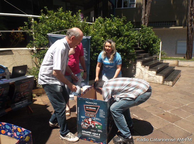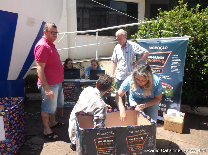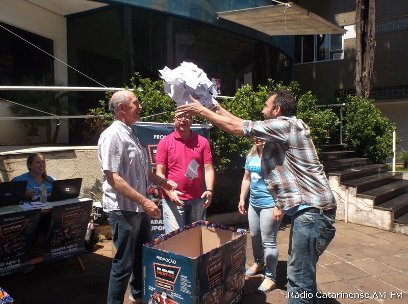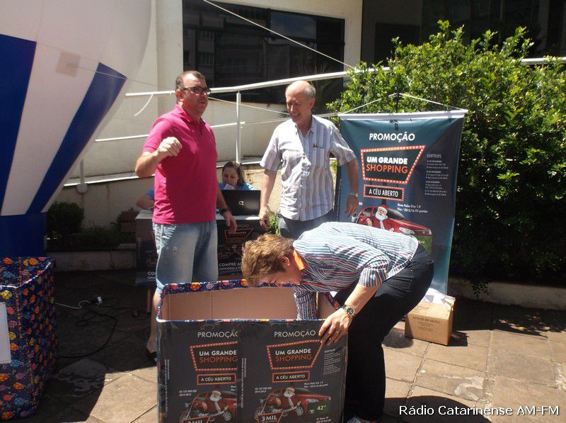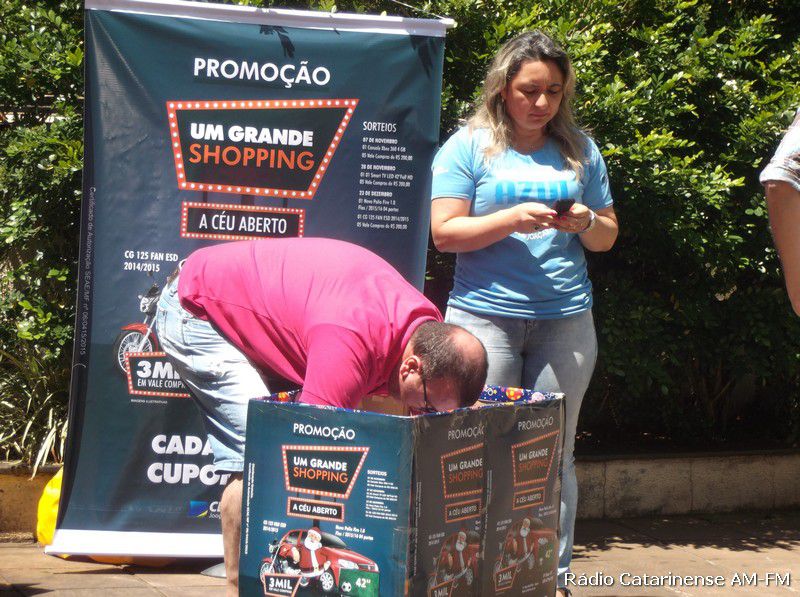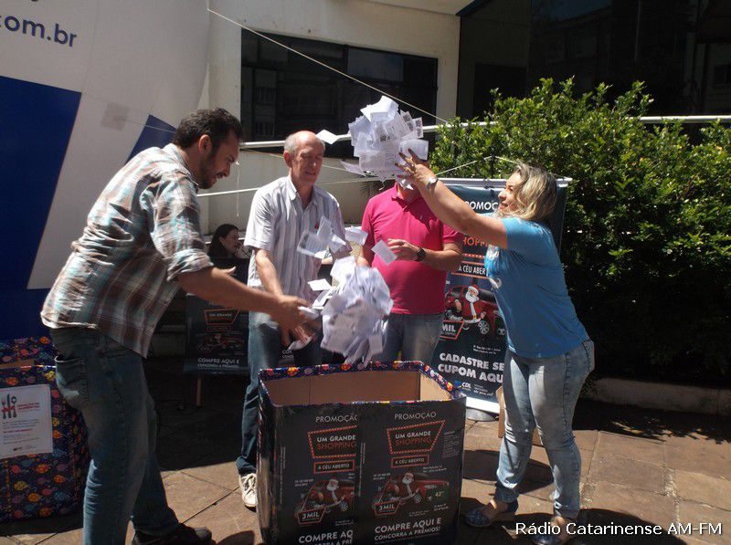 07/11/2015 No final da manhã deste sábado (07), nas dependências da praça Adolfo Konder, proximidades da Prefeitura Municipal de Joaçaba, aconteceu o primeiro de três sorteios da promoção denominada “Um Grande Shopping a Céu Aberto”, promovida pela Câmara de Dirigentes Lojistas (CDL), que tem por objetivo principal, movimentar as vendas neste período de Natal e Fim de Ano.