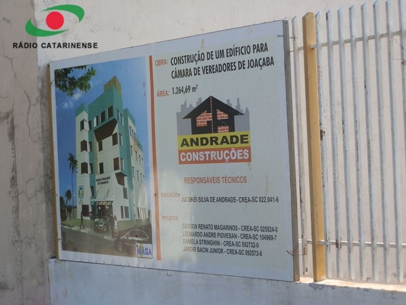 23/05/2012 Contestada por segmentos da sociedade, defendida por vereadores e funcionários a nova sede da Câmara de Joaçaba está saindo do papel. O prédio, com cinco pavimentos, está sendo construído na Vila Pedrini nas proximidades do Colégio Passos Maia. A Construtora Andrade, que venceu a licitação pública, está trabalhando no local há cerca de 3 meses. A obra, orçada em R$ 2 milhões e 100 mil, deverá ser entregue no prazo máximo de um ano e meio. O empresário Jucimar Andrade, da Andrade Construções, fala sobre o andamento dos trabalhos: