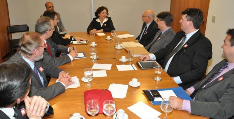 26/05/2012 A ministra das Relações Institucionais, Ideli Salvatti, participou de reunião na tarde desta sexta-feira (25) com o ministro da Fazenda, Guido Mantega, para tratar de um assunto relativo às universidades comunitárias catarinenses que integram o Sistema Acafe. As instituições acumulam uma dívida com a Receita Federal de R$ 1 bilhão em Imposto de Renda.