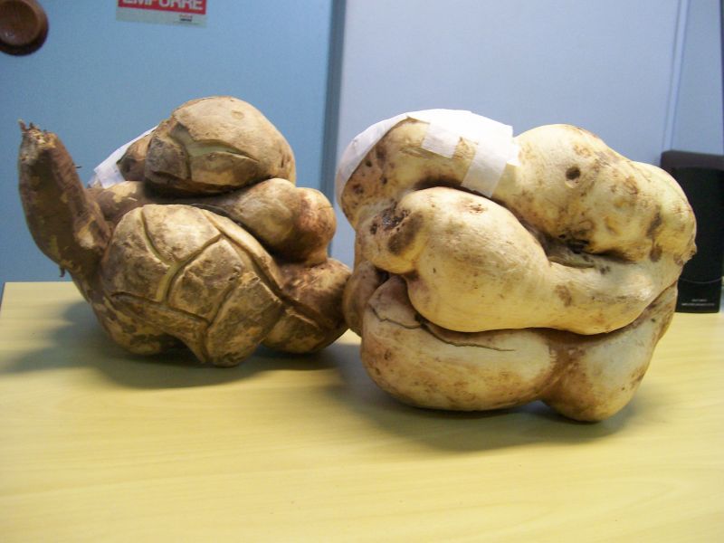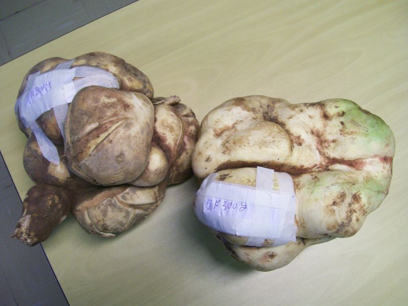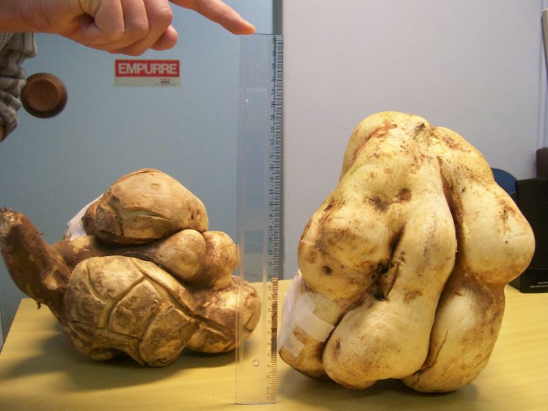 29/05/2012 Após ter ouvido a reportagem da Rádio Catarinense que foi ao ar na edição desta segunda-feira (28) do Grande Jornal, onde um agricultor de Linha Duas Casas em Joaçaba colheu uma mandioca de 1,20m, o morador de Severino Prato resolveu trazer a público a sua colheita: duas batatas gigantes que juntas totalizam mais de dez quilos. O morador do bairro São Vicente em Herval D’ Oeste ficou surpreso ao tirar do solo na manhã desta segunda uma batata de 5,3 quilos e outra de 4,8 quilos. Ele fala orgulhoso sobre o feito e garante que é a primeira vez que colhe o alimento com este porte: