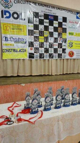 04/06/2012 O Clube de Xadrez de Lacerdópolis realizou no sábado a 2ª etapa do Circuito de xadrez. A etapa contou com a participação de 249 jogadores de 15 municípios, em 6 torneios divididos por faixa etária. Cada jogador participou de 7 partidas de 30 minutos de duração.