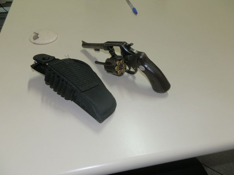 05/06/2012 A Polícia Militar prendeu um homem na tarde desta segunda-feira (04) portando arma de fogo e droga no centro de Joaçaba. Por volta das 14h, o Pelotão de Patrulhamento Tático (PPT) realizava rondas próximo ao Colégio Frei Rogério quando avistou o suspeito de iniciais R.A.M., de 19 anos. Ele foi abordado e após revista pessoal, foi encontrado com ele um revólver calibre 32 com seis munições intactas, mais 4,1 gramas de maconha. O rapaz foi preso em flagrante e conduzido à Delegacia de Polícia da comarca de Joaçaba. Segundo informações do cabo Luiz Trindade, consulta ao sistema revelou que o detido possui passagens pela polícia por porte ilegal de arma de fogo.