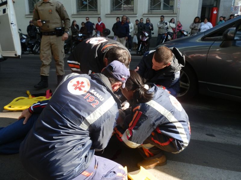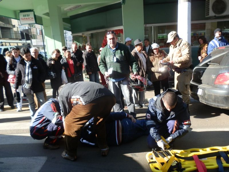 08/06/2012 Um pedestre de 68 anos foi atropelado na manhã desta sexta-feira (08) no centro de Joaçaba. Por volta das 10h, Ari Oscar Borsói atravessava a faixa de segurança na esquina da rua Francisco Lindner com a Getúlio Vargas quando foi atingido pelo Honda Civic placas IFN-5577 de Joaçaba, conduzido pelo motorista de iniciais A.G.S. A vítima, que estava consciente e apresentava um corte na cabeça, foi atendida no local pelo SAMU e conduzida ao Hospital Universitário Santa Terezinha. O motorista do Civic permaneceu no local até a chegada do socorro e da Polícia Militar que fez o levantamento dos dados do Boletim de Acidente de Trânsito (BOAT).