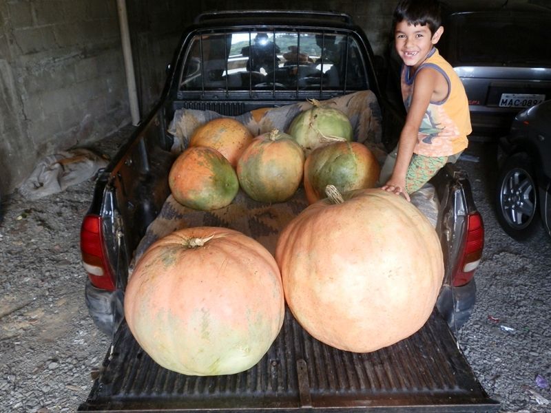 Claudimar Bilc morador da rua Nereu Ramos, bairro Santo Antônio em Herval D’Oeste, que possui um sítio localizado na comunidade de Barra do Estreito, interior de Ibicaré foi surpreendido com duas abóboras gigantes na propriedade. Colhidas com dificuldade, uma delas pesou 43 quilos e a outra 34 quilos, em seguida transportou-as para casa. Bilc conta que foi a primeira vez que plantou abóboras. Ele explica que fez apenas uma cova, colocou adubo e espalhou as sementes. Foram três meses do plantio até a colheita. Elas viraram uma espécie de atração para os vizinhos tanto do sítio em Ibicaré quanto em Herval, bem como curiosos que ficam impressionados ao ver o tamanho avantajado das abóboras.