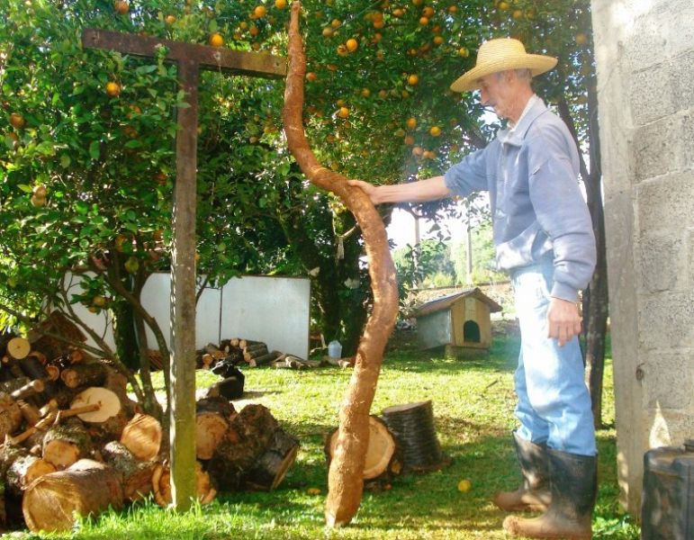 O relato traduz com perfeição o que os números comprovam. Com uma trena nas mãos, ele fez questão de medir na frente da reportagem os 38 centímetros de diâmetro, 2,8 metros de comprimento e 12,5 kg de pura mandioca. “Eu mesmo plantei faz uns três ou quatro anos”, lembrou.