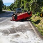 Saída de pista seguida de capotamento é registrada na BR-282, em Herval d’Oeste
