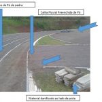 Na pista de atletismo houve a colocação de pó de pedra em espessura superior a indicada pelo técnico da federação. Além disso, a grande passagem de veículos pesados ocasionou danos à drenagem, às tubulações de água potável, aos acabamentos de meio-fio e ao pavimento entre a pista e o vestiário. Também foi identificado entupimento com pó de pedra e quebra de caixas pluviais e de grelhas. Lonas pretas, terra, pó de pedra e entulhos encontram-se depositados ao lado da pista.
