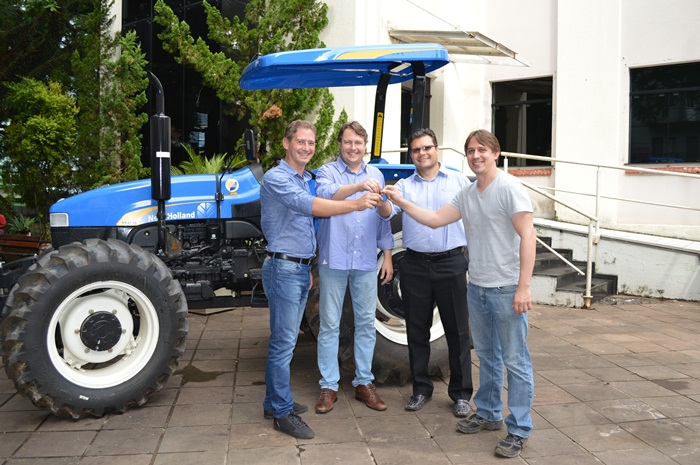 Prefeito Mamão, vice Marquinhos, secretário Tuti e vereador Éber no recebimento da máquinaNesta segunda-feira (25), a Secretaria de Agricultura de Joaçaba recebeu um trator repassado pela Secretaria de Estado da Agricultura e da Pesca. O New Holland TT 4030 auxiliará no atendimento dos pedidos dos agricultores do município a partir da terça-feira (26).